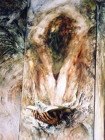 Our Abstract Paintings are often a combination of expressionism and symbolism, reflecting both the figurative and nonfigurative aspects of our concept. Scale vary from 3' by 2' to 8' by 4'. Deeply textured and washed with oils, these paintings are related to our Freestanding paintings.