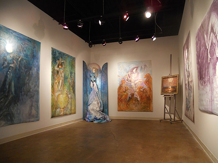 Upon first glance, the life-size canvas depicts a musician playing the flute for an indistinct audience, but then another image appears: It is the moon, a bird and a joyous man, floating above the orange clouds. According to the Bulgarian-born American artists Konstantina and Ignat Konstantinov—better known as the KonKons—varied interpretation is just one part of “Allegorikon,” the husband-and-wife team’s latest exhibit at Backdoor Gallery. The exhibit, on display through Sept. 6, at the gallery off State Route 3 in Spotsylvania County, includes several mixed-media pieces the Tappahannock couple said were inspired by myth, legend and religious texts “placed between two Eternities—the ancient theme and the contemporary expression.” Speaking as part of the “collective of creative energies” that the KonKons represent, Ignat Konstantinov said the exhibit had taken two years to complete, and that it had originated in a dream during the couple’s last exhibit at Backdoor, “Arbor Vitae.” The KonKons, who teach a growing number of art classes at St. Margaret’s School in Tappahannock, work in tandem to create each exhibit work and constantly have a revolving door of in-progress pieces in their possession. At times, Konstantina Konstantinov said, individual works will remain stalled until they can come to an agreement about the next step. Many of the exhibit’s pieces were completed on canvas, but “Allegorikon” also utilizes the artists’ signature material—sailcloth—in works like the gallery’s linchpin piece. “Sonata” depicts triptych-style wooden boards, a painted violin and a painted sail complete with its original rungs and wrinkles. The three-dimensional nature was designed to provide a variety of ways to view the work. “When the exhibit opened, we even had a CD player beneath the sailcloth,” Ignat Konstantinov said, “so people would hear music and think it was coming from the art.” The consistent use of sailcloth in their work, he said, was not only because he and his wife felt the souls of old sailcloths that had seen travel, salt and rust, but also because it provided a crackled effect like elephant skin that they could appreciate. Konstantina Konstantinov said the couple also worked to incorporate discarded, recycled and natural materials in their works, both as a personal preference and to preserve the environment. The works in their newest exhibit relate to the couple’s earlier pieces, both in their subjects and techniques, her husband said. Their conscious efforts to straddle the line between fantasy and reality, as well as a penchant for re-imagining religious scenes or figures, have led to the couple’s labeling as religious or abstract artists, one that they find disingenuous. “We believe in things, and we believe in miracles,” he said, “but that doesn’t make us religious artists.” She said said their ability to weave these images and materials together was much more like providing balance. “It is like we are swimming in two rivers, two streams,” she said. Though the KonKons said there are specific things they hope viewers will see in their works, Ignat Konstantinov said that one of the primary purposes of “Allegorikon” is to provoke or encourage a variety of interpretations by presenting items and ideals out of their original contexts to “resemble dreams rather than real life.” “You never know what someone will see,” Konstantina Konstantinov said. “Sometimes, it can even surprise us, what others come up with.” Contact the KonKons! |