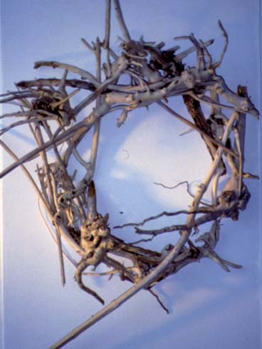 This exhibit of the Stations of the Cross (entitled The Root of Faith) works for us in a way much like reading the Gospels in the context of our time. A set of fifteen mixed media paintings, 25" by 31", oil, texture and drift wood on canvas panel, rustic frame, including The Crown of Thorns, 25" by 35", drift wood on canvas. The theme, The Root of Faith, is a reflection of our journey in faith. The roots used in the frames of these paintings were taken from the banks of the Rappahannock River where we now reside.