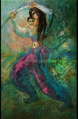 The theme of iconic women who influenced history by their actions is part of every culture. These life-size interpretations attest to the resonance of their stories still. Each painting tells a forceful and insistent story of the impact of a particular woman. The movement of the paint through the background and the figures echoes the action. These women are immediate and vital.